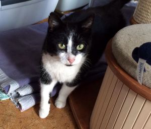 Die junge Katzenmutter brachte ihre Kitten in einem Stall zur Welt. Eine tierliebe Frau nahm die Katze auf und versorgte sie, bis die Katzenbabys sie nicht mehr brauchten. Die Kleinen fanden schnell neue Besitzer und die Katzenmutter zog in eine Pflegestelle unseres Vereins. Durch die Veröffentlichung auf unserer Homepage fanden ihre Besitzer die Katze und sind nun glücklich, dass sie wieder bei ihnen ist und schrieben uns folgendes:
