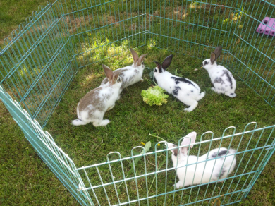 Unsere Kaninchen sind jetzt 8 Wochen alt und ziemlich zutraulich.