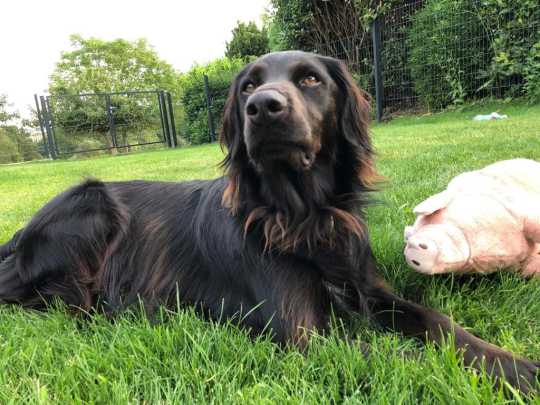 Lenny ist 7 Jahre alt und ein sehr sensibler, aber lieber Hund, der mit all seinen Artgenossen gut zurecht kommt. Er ist ein Mischling aus Münsterländer und Flat Coated Retriever. Zudem ist