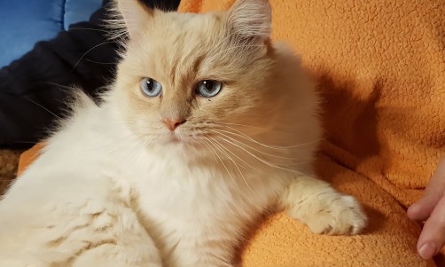 Sky ist 4 Jahre alt und sucht nun einen Prinzenplatz. Er lässt sich gerne streicheln und auch kämmen. Sein Wesen ist sanft und lieb. Mit Hunden kommt er gut zurecht.