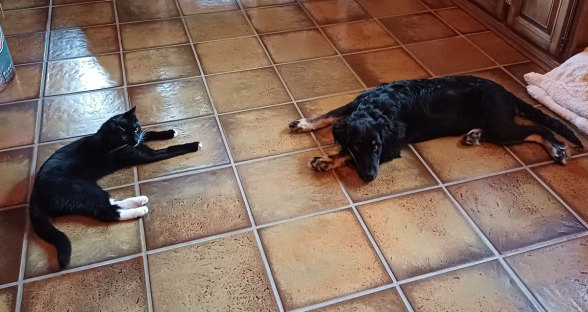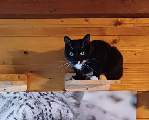 Mit unserem Hund kommt er sehr gut zurecht und zeigt wenig Berührungsängste. Katzenerfahrene Hunde im neuen Zuhause sollten kein Problem sein.